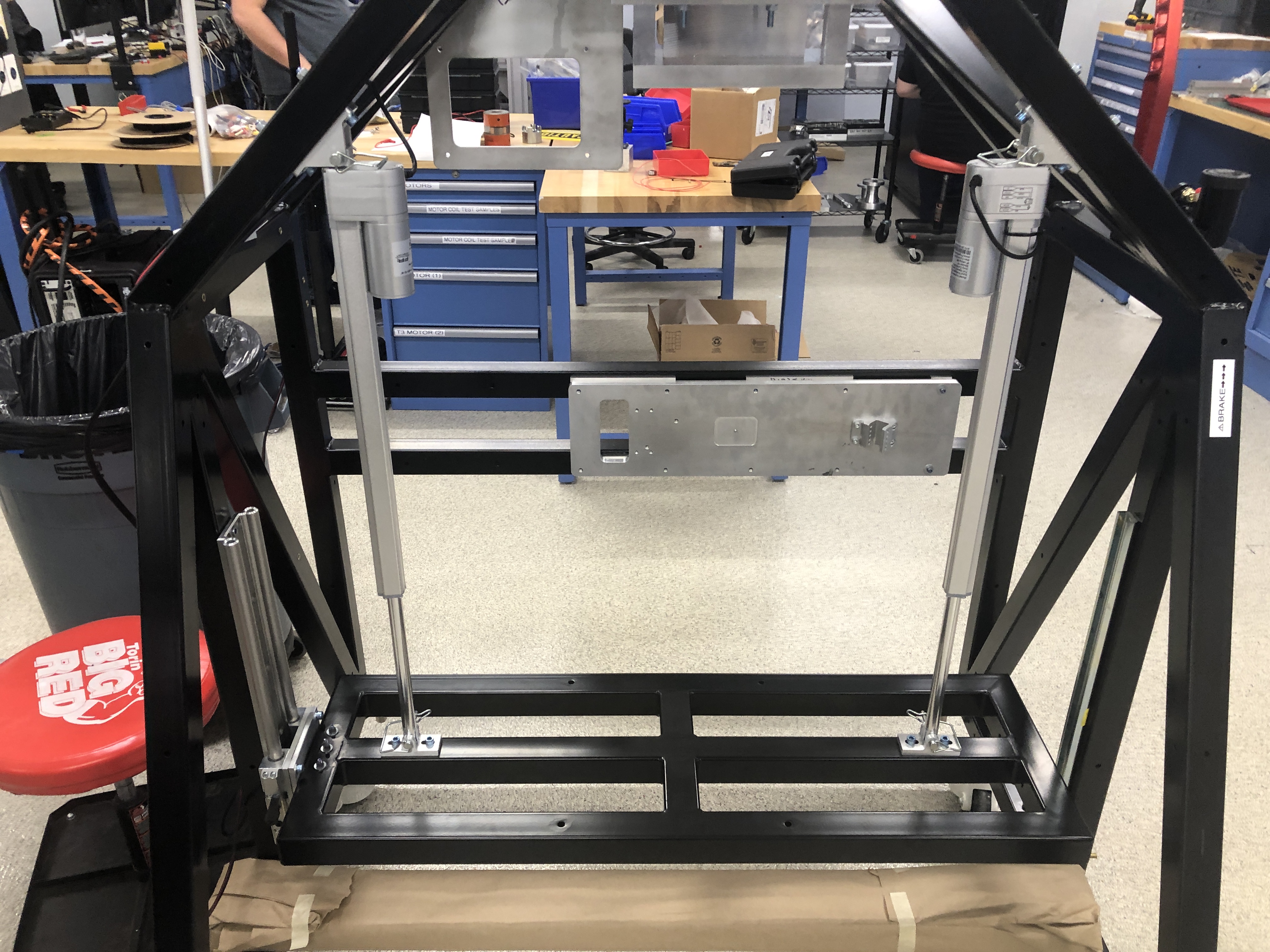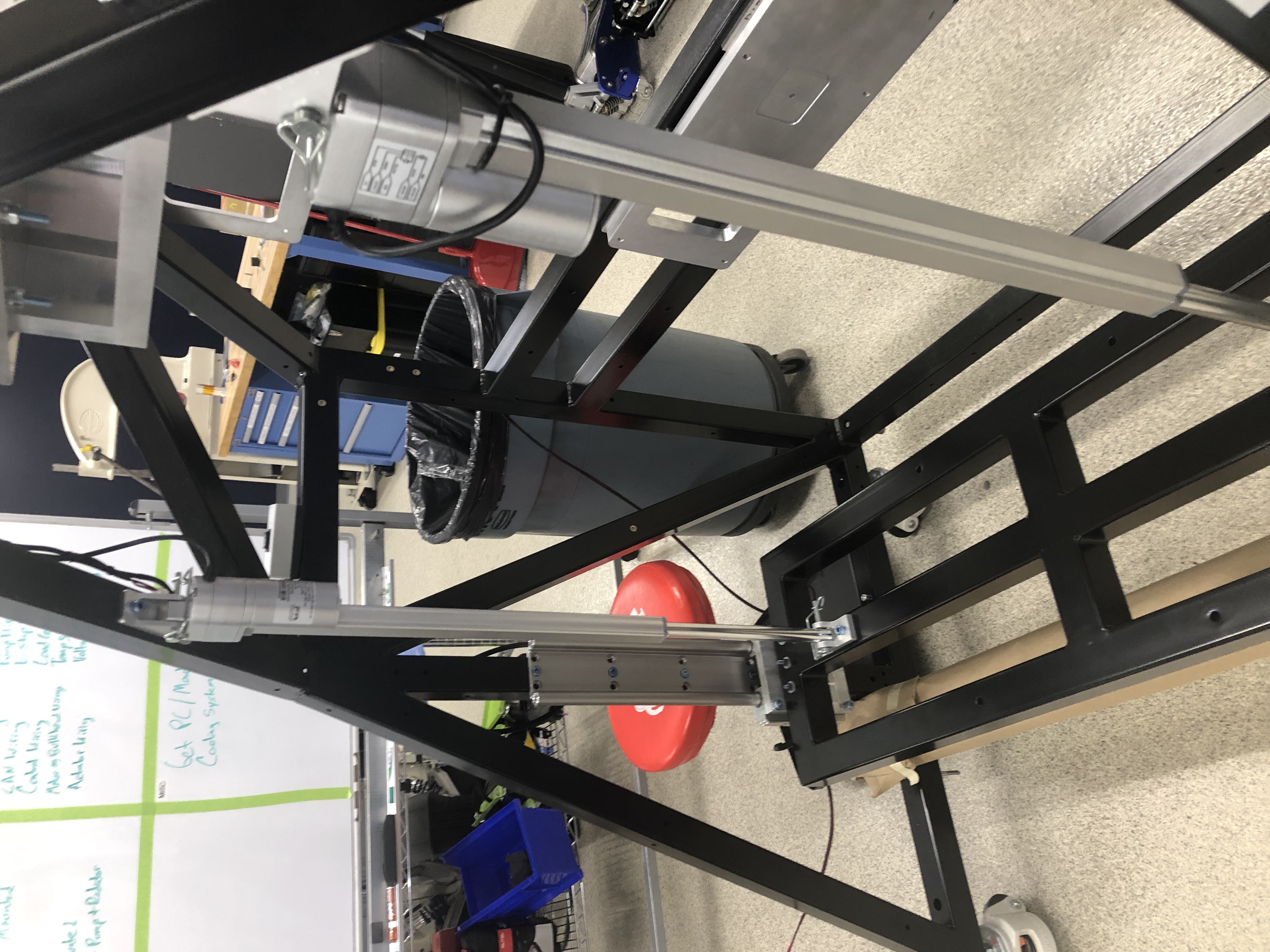 Part of developing the vehicle and powertrain required building a custom test stand to evaluate suspension kinematics, component lifecycle, and force output. I developed the welded steel frame, movement system, and system integration over 2 months.