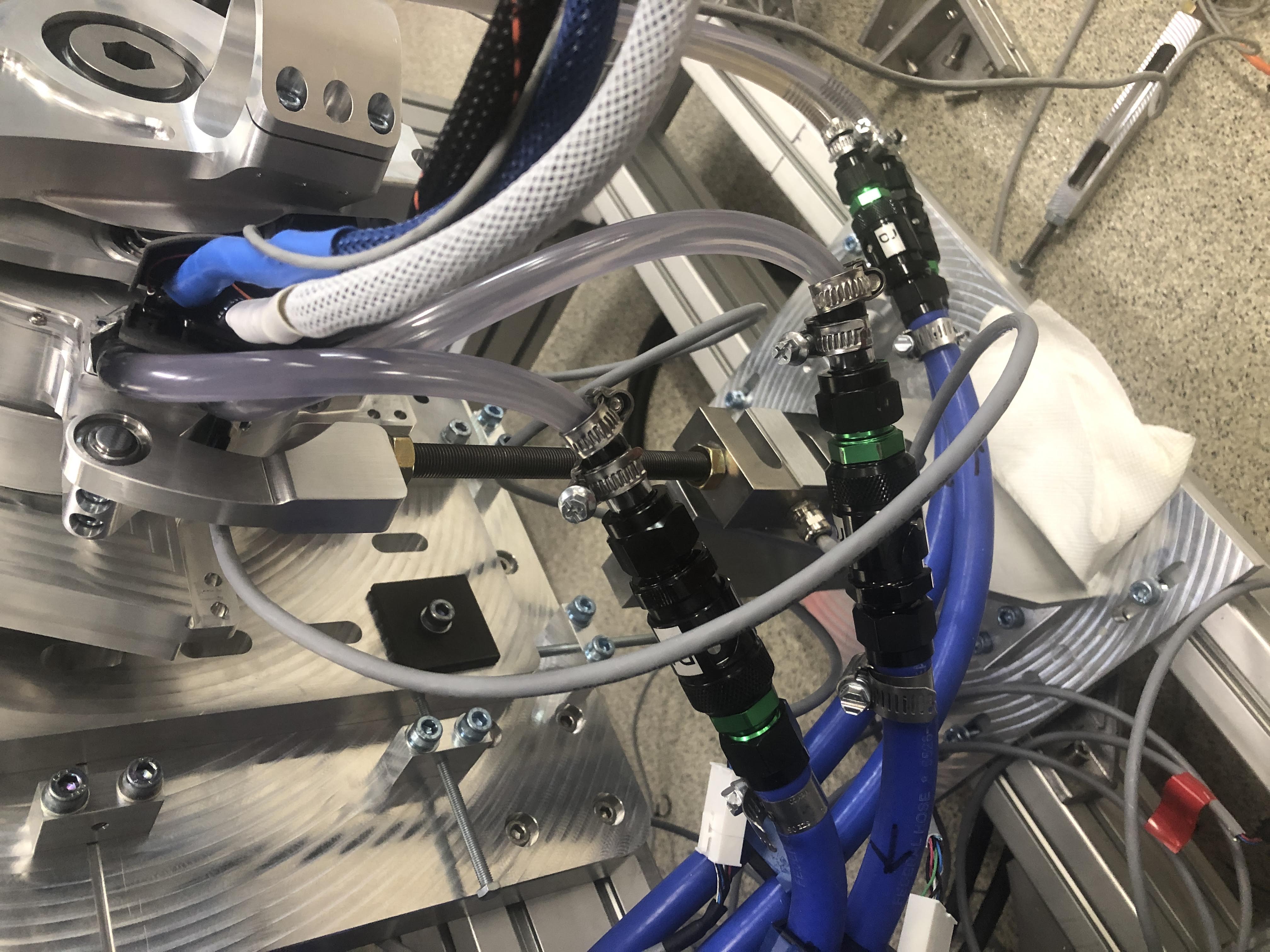 I designed and built the fixture plate, alignment plate, torque reactor, measurement connections, and wheel bearing holders (shown in the red arrows below.