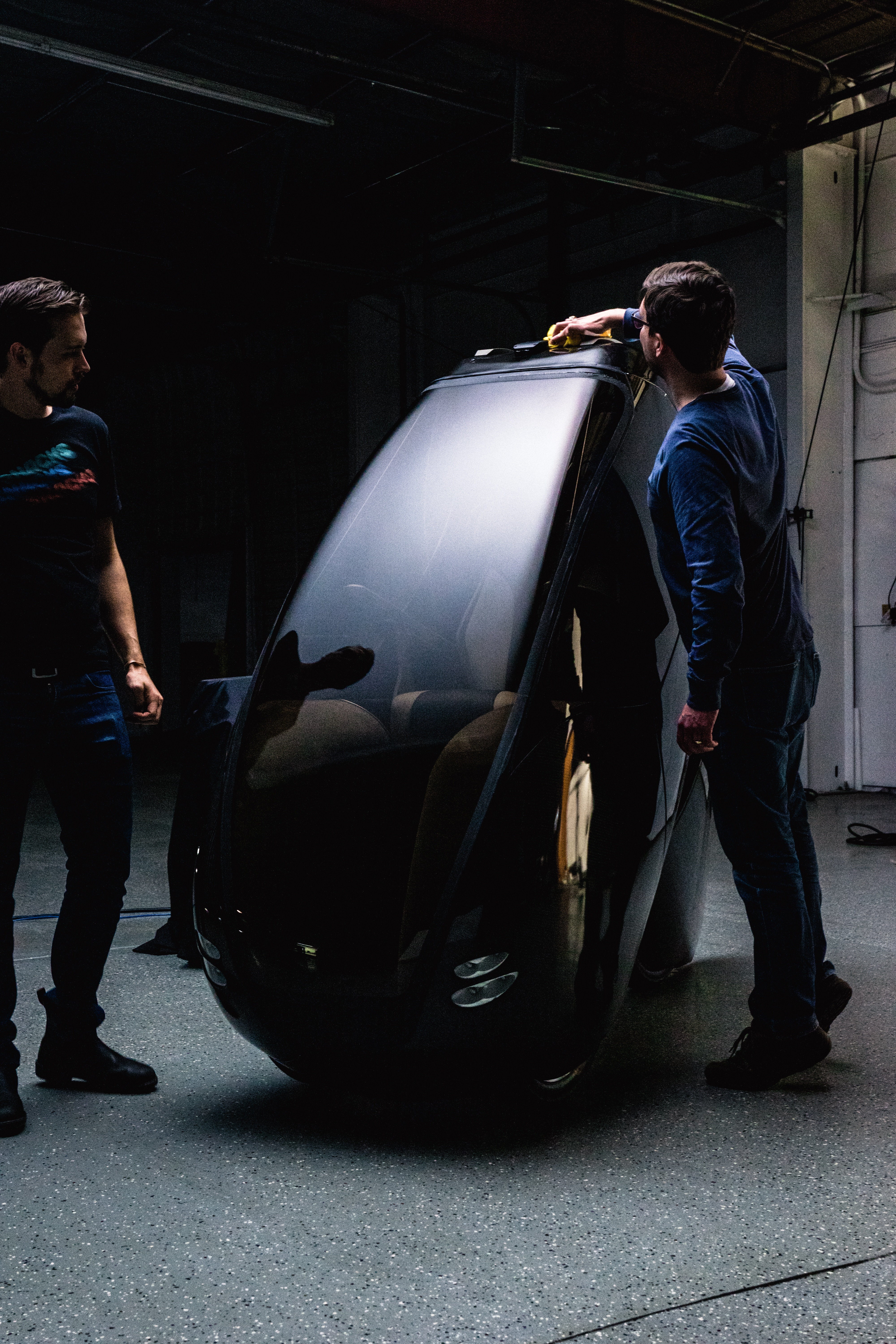 This vehicle was designed to convey the founder's vision to investors. He wanted to show an ultra- efficient vehicle at highway speeds, while also giving the occupant a commanding view of the road in slower urban settings. To park the AERO pod folded up so 4 could fit in a normal parking space.