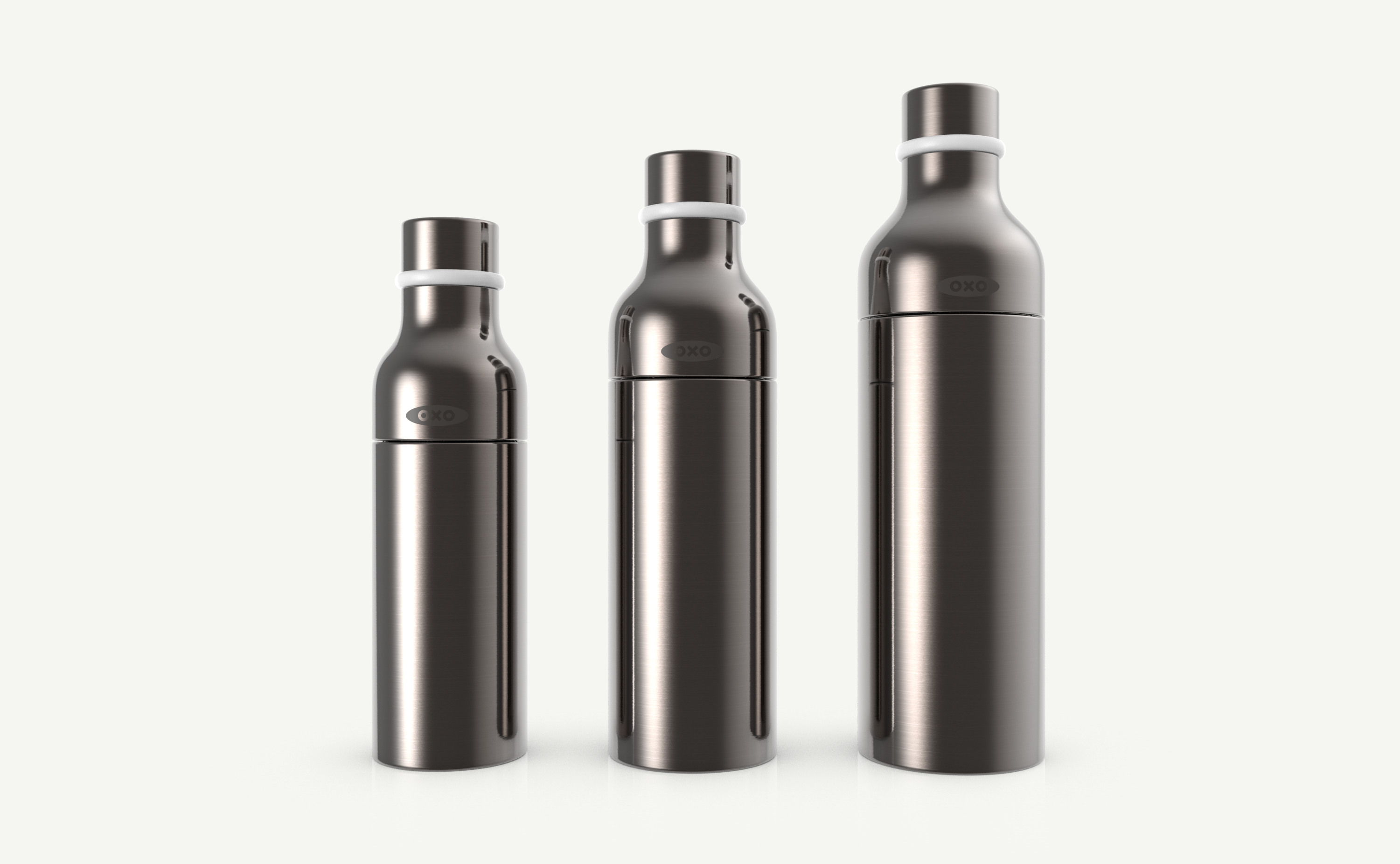 The Two Top bottle was intended to be a functional upgrade on a fashionable item. Our design research indicated that people loved drinking from small openings, but hated not being able to put ice cubes in it.