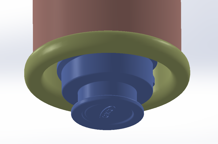 I strive to realize the pure product vision created by industrial designers. To make the cap manufacturable and maintain the aesthetic design I split the plastic into two parts and overmolded the yellow part onto the blue SPI threads.